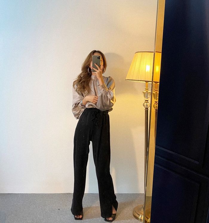 The standout feature of this t-shirt is its backless design that adds a daring twist to a classic silhouette. Perfect for layering or wearing alone, this shirt is versatile enough for both casual outings and more dressed-up occasions. The stand collar and shirt sleeves give it a tailored finish, making it a must-have piece in your fall collection.