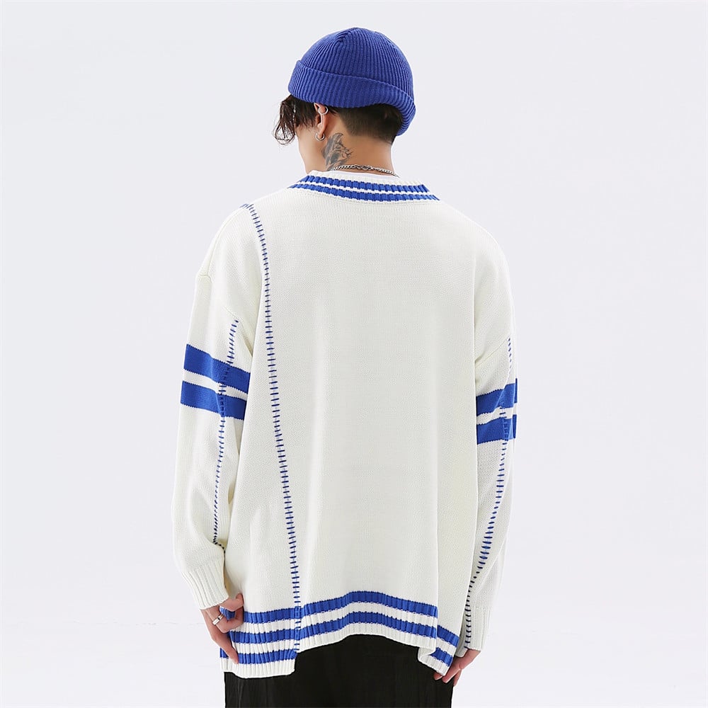 Elevate your wardrobe with our Colorblock Letter Embroidery V-Neck Personality Pullover Sweater designed specifically for men who want to make a statement. This loose-fitting pullover combines comfort and style, making it a perfect choice for casual outings or laid-back gatherings.