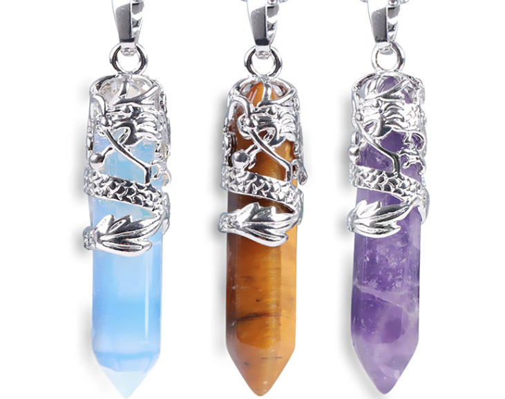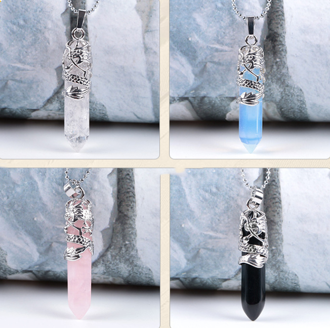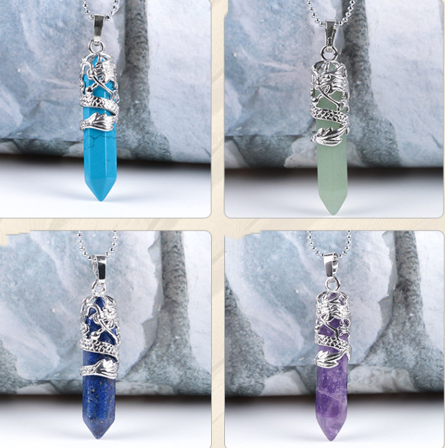 Natural Stone Hexagonal Dragon Totem Crystal Necklace